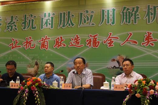 農(nóng)業(yè)部飼料工業(yè)中心副主任、國家飼料工程技術(shù)研究中心副主任、中國農(nóng)業(yè)大學(xué)教授譙仕彥博士在會上做了《抗菌肽研究進(jìn)展與應(yīng)用趨勢》的報告。闡述了抗菌肽的機(jī)理和作用,抗菌肽是生物體內(nèi)經(jīng)誘導(dǎo)產(chǎn)生的一種具有生物活性的小分子多肽,分子量在2000~7000左右,由20~60個氨基酸殘基組成??咕牡目咕V比傳統(tǒng)抗生素更寬,既有抗革蘭氏陽性菌和革蘭氏陰性菌的作用,又有抗真菌和病毒的作用??咕牡淖饔门c其對病原菌細(xì)胞膜的迅速破壞相關(guān),并且抗菌肽的作用不涉及特定的靶位,完全是陰陽離子的物理作用,而不改變細(xì)菌表面的結(jié)構(gòu)和帶電性能,因此抗菌肽幾乎不產(chǎn)生抗藥性。譙博士還詳細(xì)講解了抗菌肽在各個領(lǐng)域的應(yīng)用,其中特別分析了在動物上應(yīng)用抗菌肽的實驗數(shù)據(jù)和研究成果。