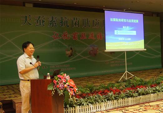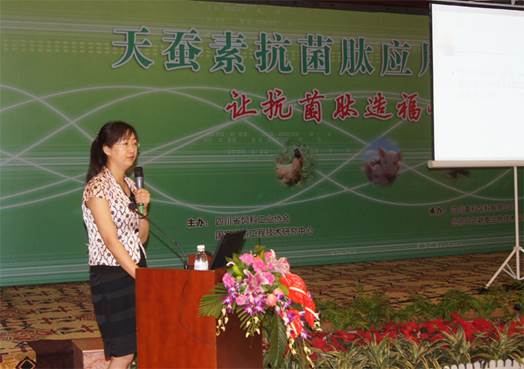 中農(nóng)穎泰公司李波博士向與會代表介紹了天蠶素抗菌肽的應(yīng)用技巧。天蠶素是第一個被發(fā)現(xiàn)的動物抗菌肽,大量研究結(jié)果表明,天蠶素抗菌肽可以替代金霉素、桿菌肽鋅等常用飼用抗生素,并具有促進(jìn)動物生長、增強免疫功能,改善畜產(chǎn)品品質(zhì)、增進(jìn)人類健康等功能。李博士對天蠶素抗菌肽在國內(nèi)的研究動向,并從其安全性、生物特性、穩(wěn)定性等方面進(jìn)行闡述。還展示了在大鼠、肉雞、仔豬及水產(chǎn)上的實驗效果,并根據(jù)實驗結(jié)果提出了相應(yīng)的飼喂方案。
