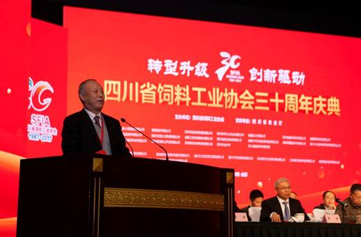 來自農(nóng)業(yè)部、中國飼料協(xié)會、省農(nóng)業(yè)廳的領導、行業(yè)知名專家及企業(yè)代表等800余人親臨盛會。四川省飼料工業(yè)協(xié)會會長陳代文教授致辭并作三十年發(fā)展總結(jié)報告,中國飼料工業(yè)協(xié)會會長李德發(fā)院士、北京飼料工業(yè)協(xié)會會長汪秀艷先后發(fā)言。