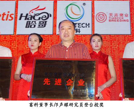 經(jīng)農(nóng)業(yè)部批準(zhǔn),中國畜牧業(yè)協(xié)會于2016年5月18日至20日在沈陽召開2016中國畜牧業(yè)博覽會暨中國國際畜牧業(yè)展覽會之際,隆重舉行了盛大的中國畜牧行業(yè)表彰頒獎大會,畜科榮獲“中國畜牧行業(yè)先進企業(yè)”,全國人大副委員長、原農(nóng)業(yè)部副部長、中國畜牧業(yè)協(xié)會張寶文會長,農(nóng)業(yè)部總畜牧師王智才,全國畜牧總站李希榮站長,全國畜牧總站黨委書記何新天等國家部省領(lǐng)導(dǎo)人為獲獎企業(yè)授證頒獎,畜科董事長鄺聲耀研究員登臺授獎獲證。