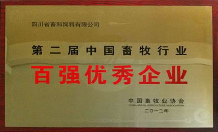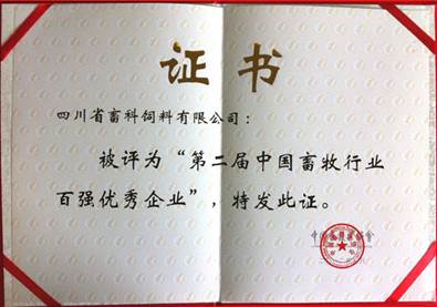 畜科榮獲中國畜牧行業(yè)百強優(yōu)秀企業(yè)